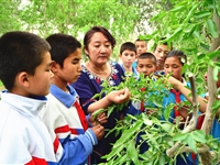 2016-05-30【新疆经济报】若羌学生田间地头学知识5月18日,正是若羌枣花盛开的时节,若羌县第二小学六年级(1)班班主任热娜古丽·吾拉音将自然课的课堂搬到了田间地头,带领学生们走进红枣园,近距离感受大自然中植物的生长特性,加深学生对书本知识的理解和学习,培养孩子们从小热爱自然、热爱农业、热爱科学的意识。吴方摄 [详细]