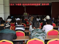 •   为进一步深化民族团结教育月活动成果,5月27日,铁干里克乡举办“中国梦·我身边的民族团结故事”主题演讲比赛。   来自各村的7名选手围绕“中国梦·我身边的民族团结故事”这一主题,结合自身经历和身边的民族团结先进典型,讲述了发生在各族群众之间团结友爱的感人故事,从邻居到同事,从民族到国家,通过不同的角度深刻诠释了…[详细]