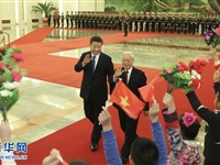2017-01-13习近平同越共中央总书记阮富仲举行会谈1月12日,中共中央总书记、国家主席习近平在北京人民大会堂同越共中央总书记阮富仲举行会谈。这是会谈前,习近平在人民大会堂北大厅为阮富仲举行欢迎仪式。新华社记者 庞兴雷 摄 新华社北京1月12日电(记者刘华、郝亚琳)1月12日,中共中央总书记、国家主席习近平在人民大会堂同越共中央总书记阮富仲举行会谈。双方一致表示,要秉持“长期稳定、面向未来、睦邻…[详细]