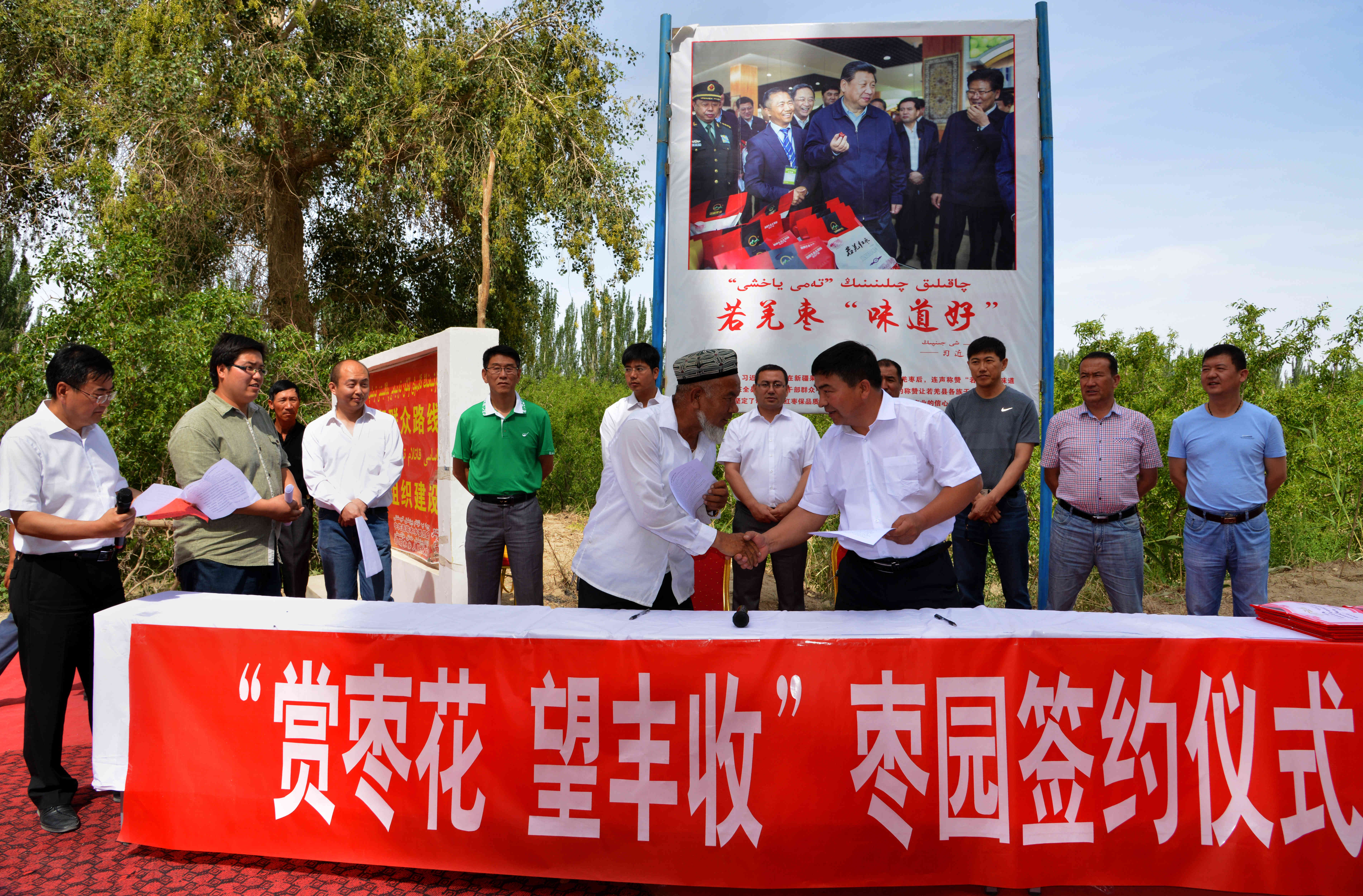 枣花节上,当地红枣企业走进枣园与枣农现场签订了秋季红枣收购协议,形成农企融合、互利共赢的合作机制。