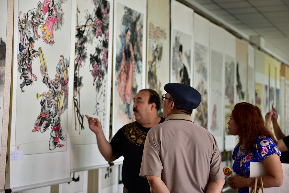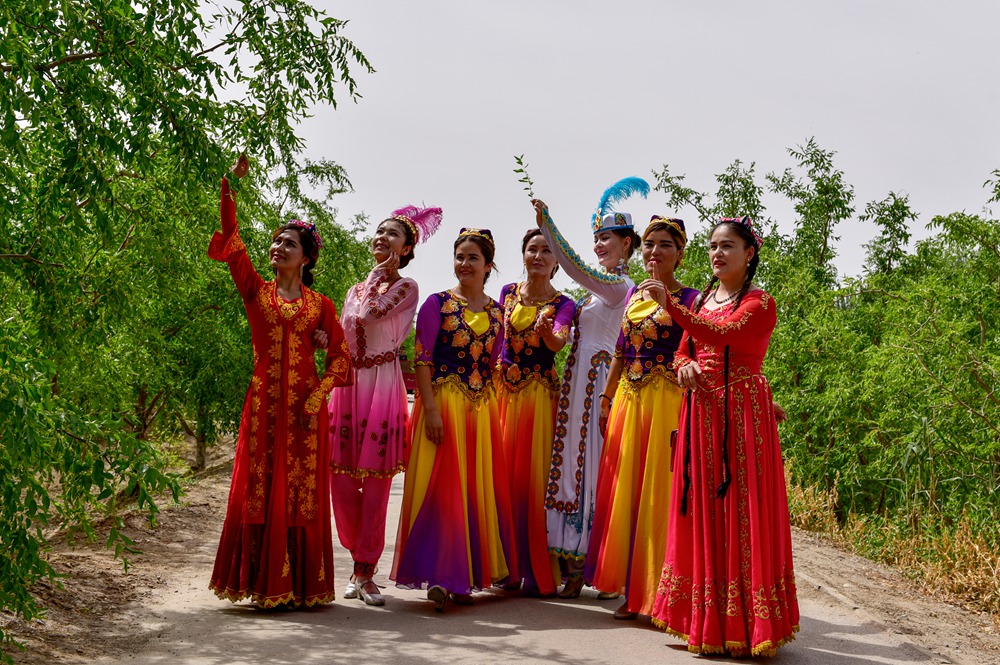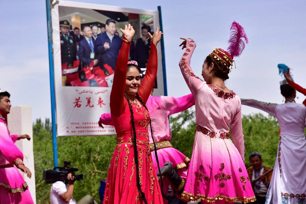 上图为大型文娱活动“若羌赛乃姆”开始前演员们合影