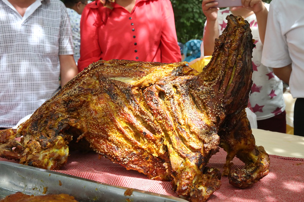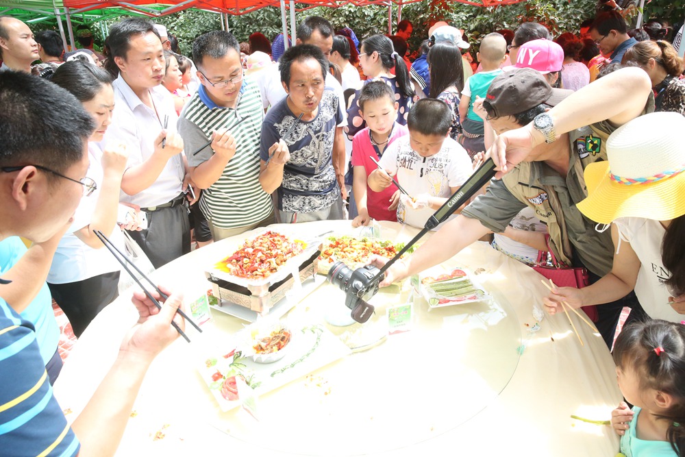 上图为美食的诱惑大家把桌子围了个水泄不通