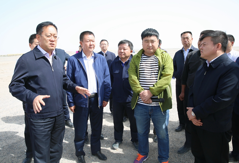 图为 在若羌县塔东综合物流园和火车站,听取了物流园和车站规划等情况的介绍