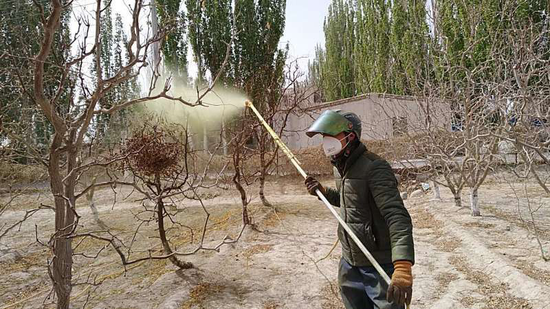 为切实做好我乡枣树病虫害防治工作,提升红枣品质,确保2018年枣农持续增产增收,吾塔木乡党委早安排、早部署,要求对全乡枣树在萌芽前喷洒一次石硫合剂,不漏一亩地、不漏一棵树,预防和减少枣树有害生物的危害。