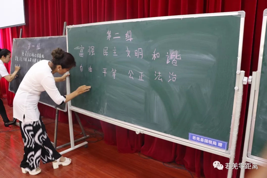在随后的国家通用语言文字听写大赛上,三个村民小组代表在黑板上精准默写出了社会主义核心价值观内容,赢得在场观众雷鸣般的掌声。