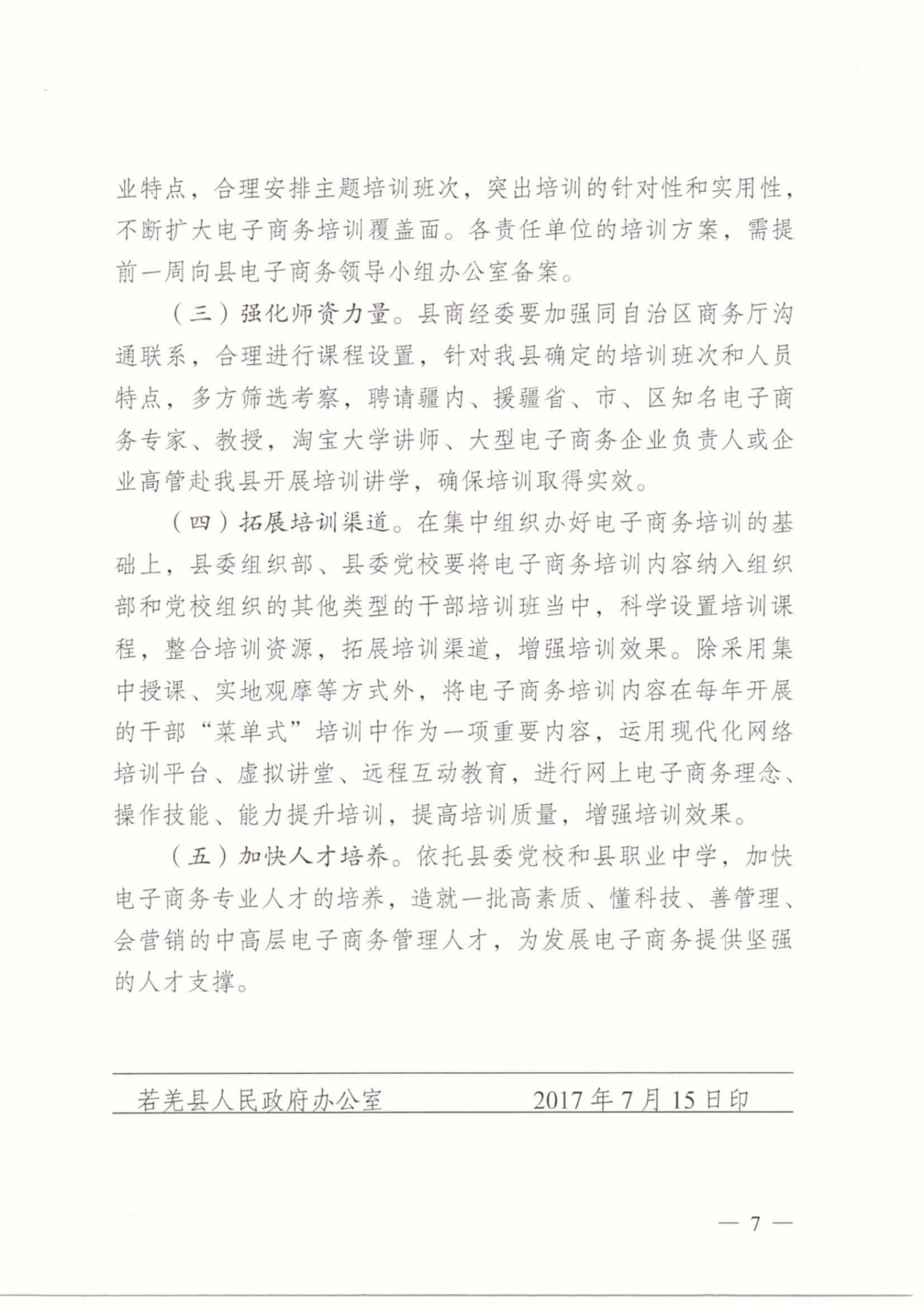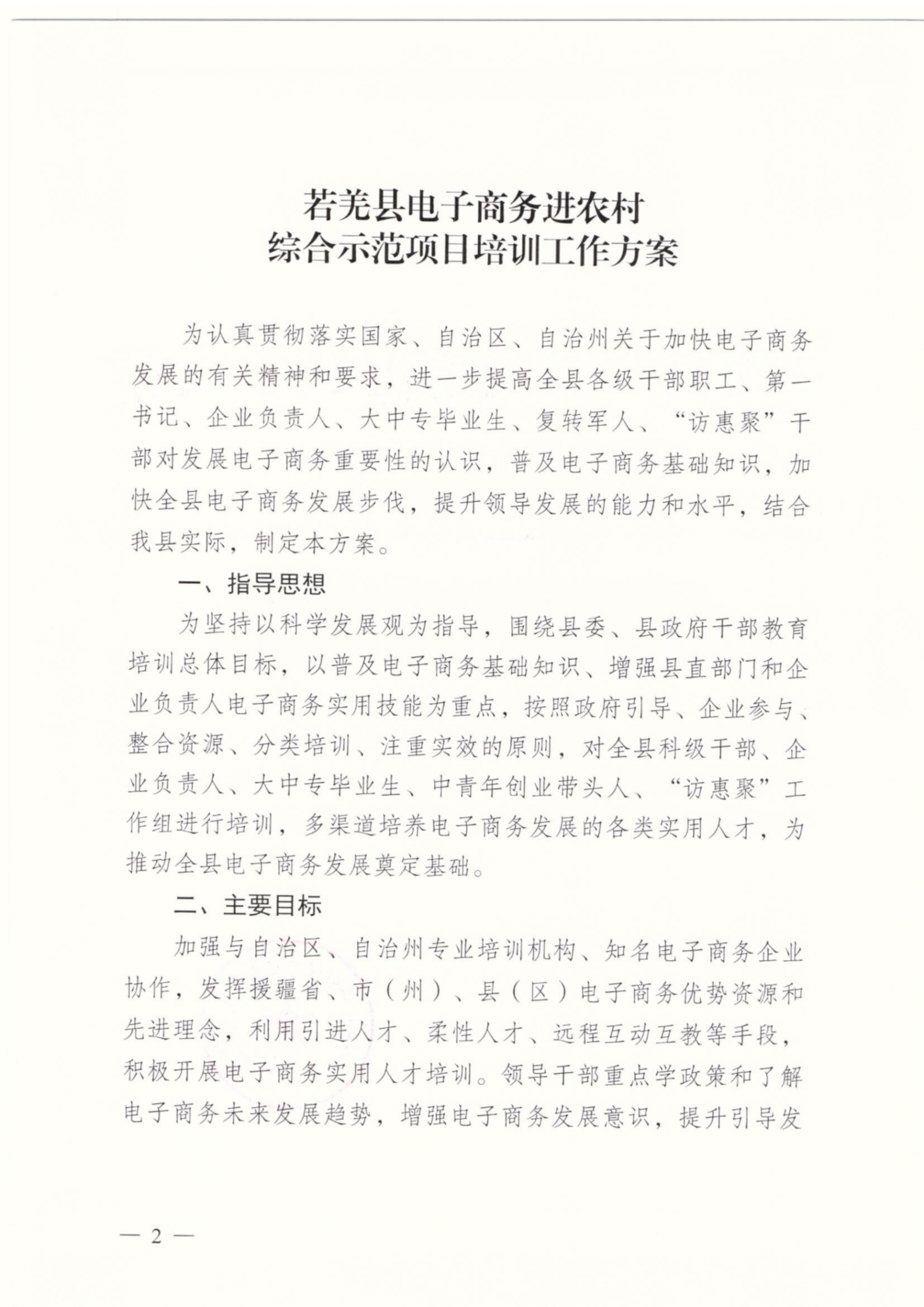 关于印发若羌县电子商务进农村综合示范项目培训工作方案的通知