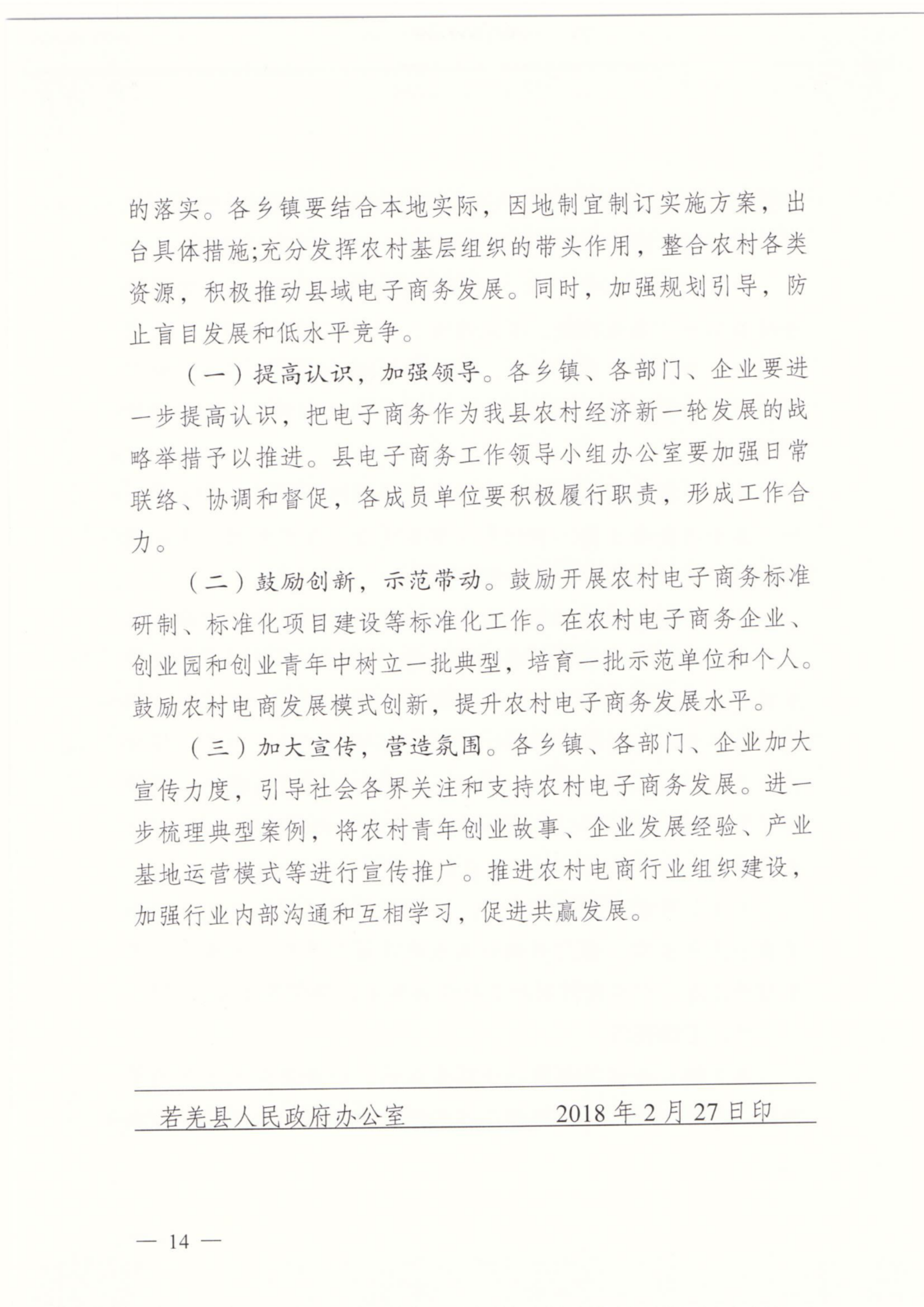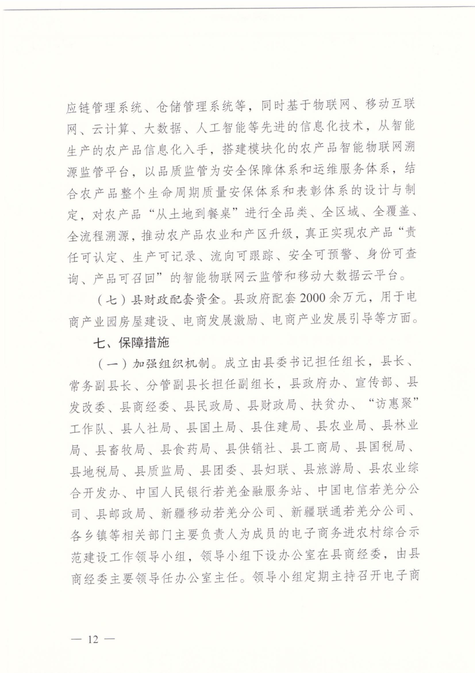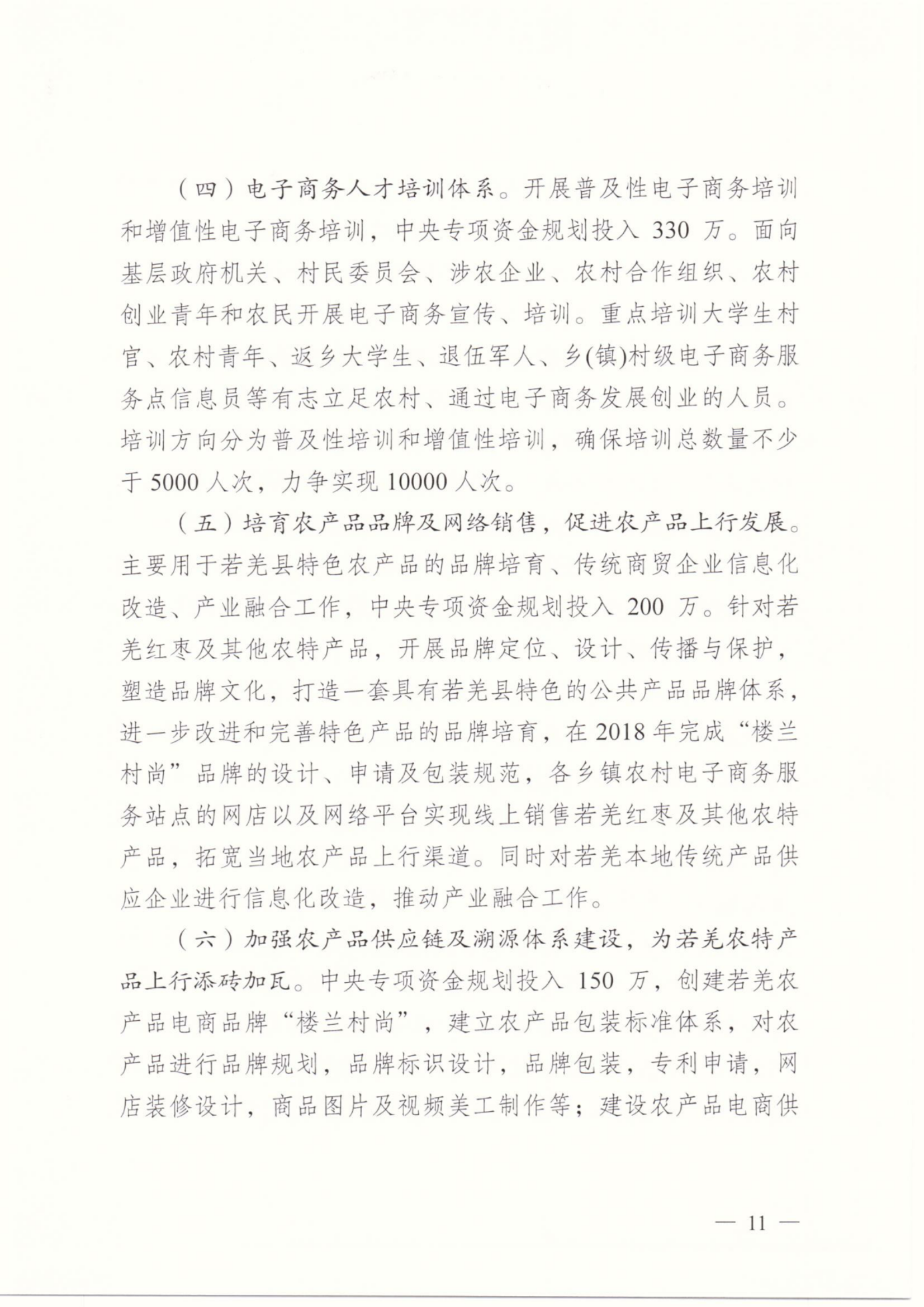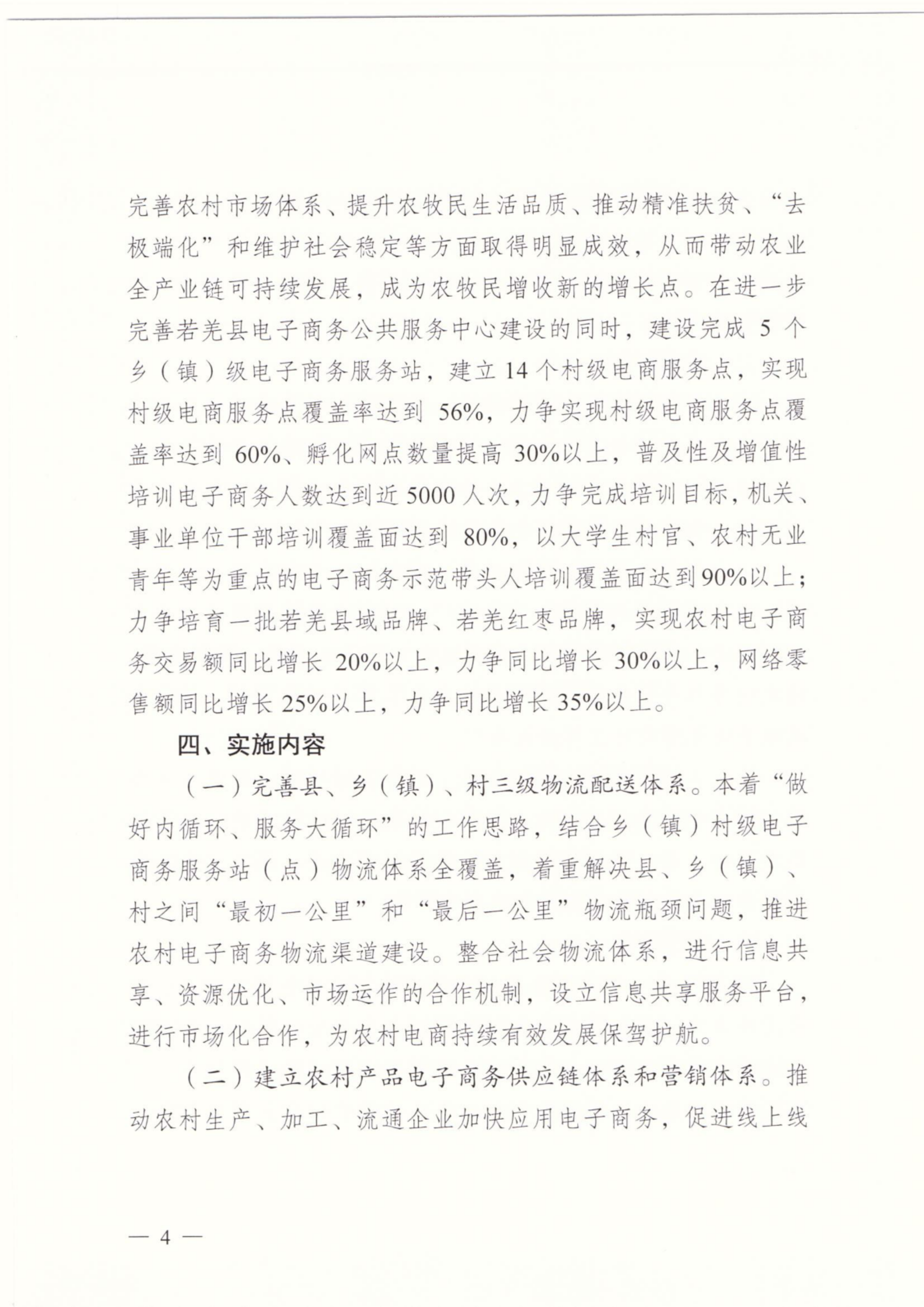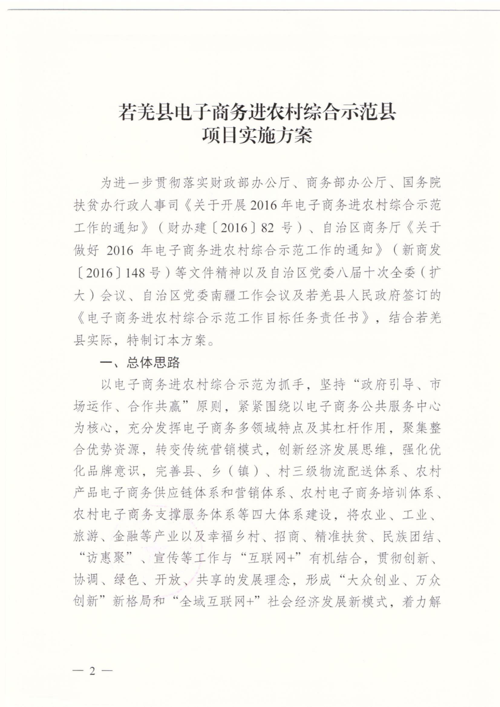 关于印发若羌县电子商务进农村综合示范项目实施方案的通知