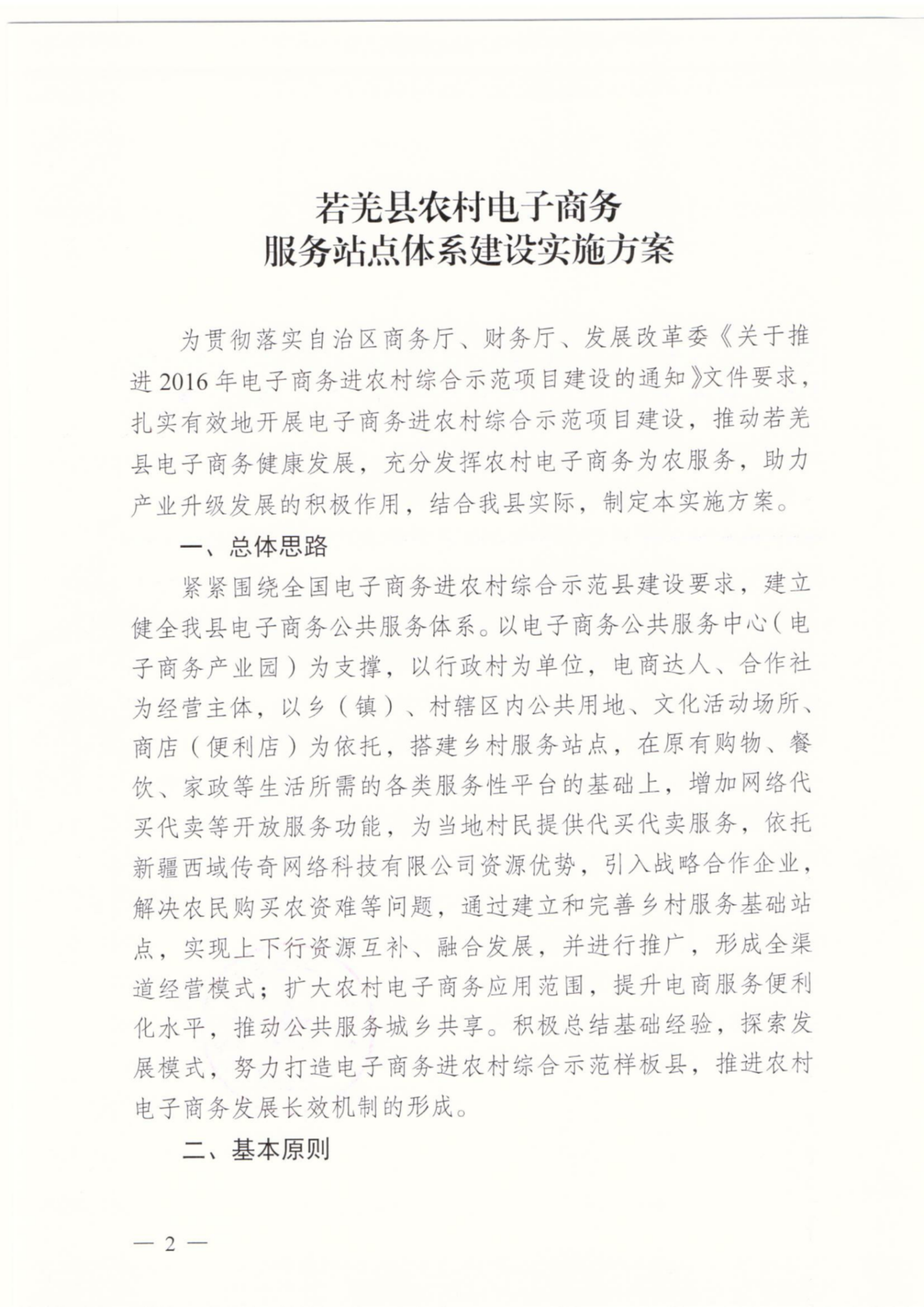 关于印发若羌县电子商务服务站点体系建设实施方案的通知